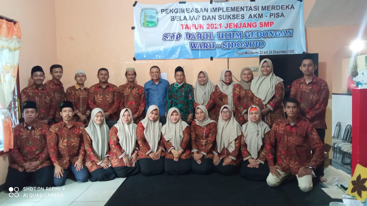 Kegiatan Sosialisasi dan Pengimbasan AKM PISA 2021 SMP Darul Ulum Waru dilaksanakan di Pacet, Mojokerto pada hari rabu, 23 Desember 2020. Peserta dari Sosialisasi merupakan seluruh Pendidik dan Tenaga Kependidikan SMP Darul Ulum Waru. Sosialisasi tersebut juga mengundang Fasilitator Daerah Kabupaten Sidoarjo yang diwakili oleh Bapak Dr. Hartoyo, M.Pd. Kegiatan ini memaparkan materi AKM berupa materi: a) Asesmen Nasional. b) Kebutuhan Pembelajaran saat ini: Kreativitas dan Kompetensi Global, Multiple Intelligence, Asesmen Diagnostik. c) Portofolio Kerja Siswa. d) Penyusunan AKM berupa: Produk soal literasi membaca meliputi proses kognitif: (1) menemukan informasi, (2) interpretasi dan integrasi serta (3) evaluasi dan refleksi. Produk soal literasi numerik meliputi proses kognitif: (1) pemahaman, (2) penerapan dan (3) penalaran.