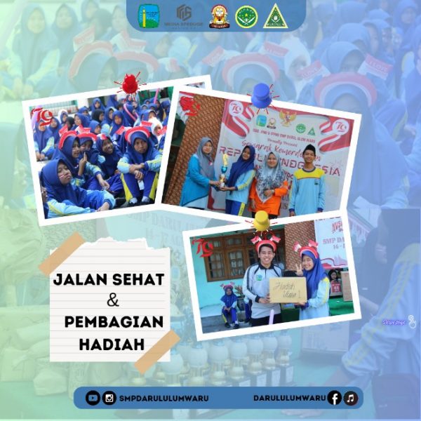 Jalan Sehat merupakan salah satu kegiatan yang paling dinantikan masyarakat khususnya warga sekolah. Dalam momentum di Bulan Kemerdekaan Republik Indonesia, Pada tanggal 19 Agustus 2024 SMP Darul Ulum mengadakan jalan Sehat yang digagas oleh panitia Osis, Ipnu, dan Ippnu harapanya selain juga memperingati hari kemerdekaan Indonesia juga menjadi agenda yang menyehatkan seluruh warga sekolah.