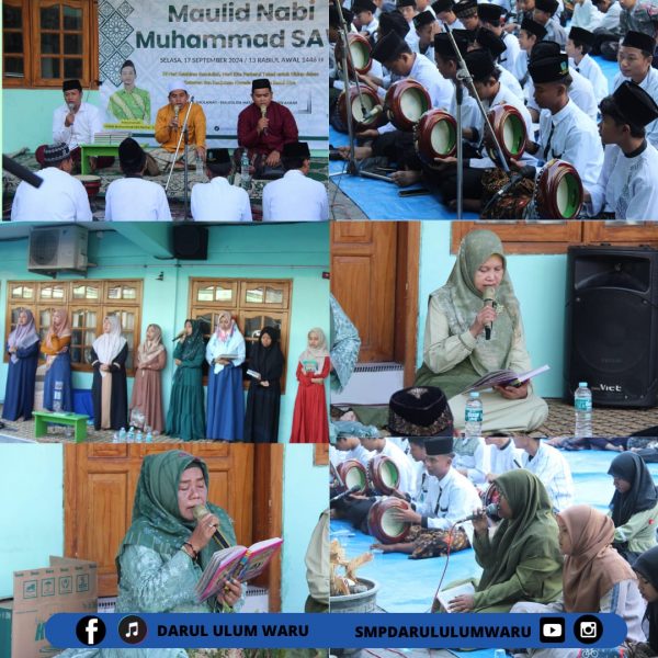 Pada hari Selasa, 17 September 2024, seluruh siswa-siswi dan tenaga pendidik di SMP Darul Ulum Waru mengadakan peringatan Maulid Nabi Muhammad SAW dengan penuh khidmat dan kebersamaan. Kegiatan ini diadakan sebagai wujud cinta dan penghormatan kepada Rasulullah Muhammad SAW serta sebagai momen pembelajaran penting bagi seluruh peserta.